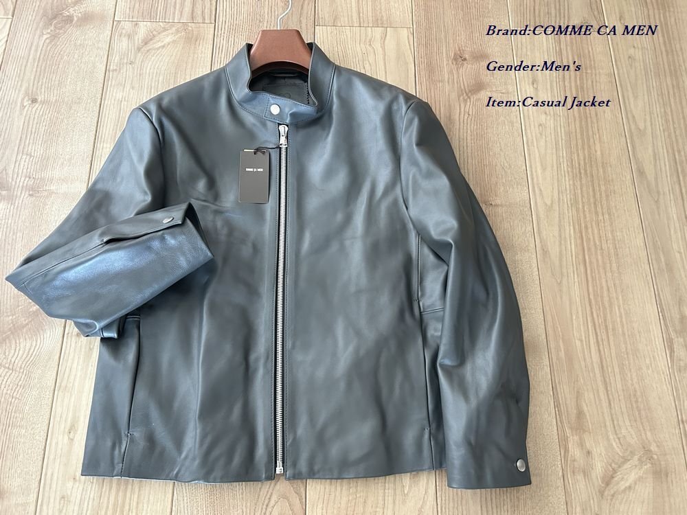 新品訳有り COMME CA MEN コムサメン ラムナッパ シングルライダースブルゾン 04グレー Mサイズ 31LK01 定価86,900円