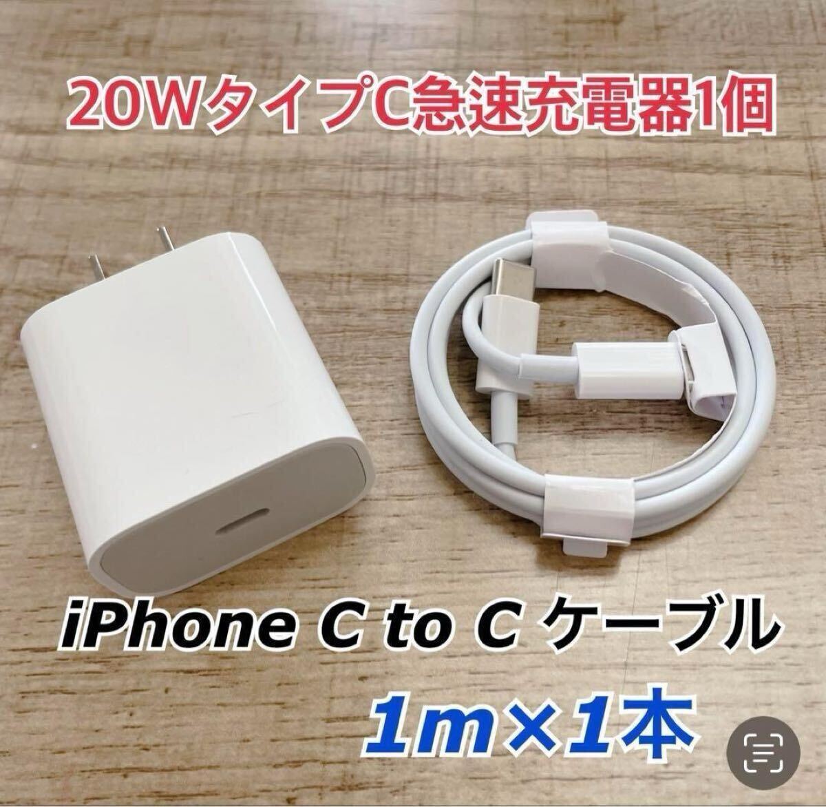 1m iPhone15 USBタイプCケーブル&20W急速充電器セット