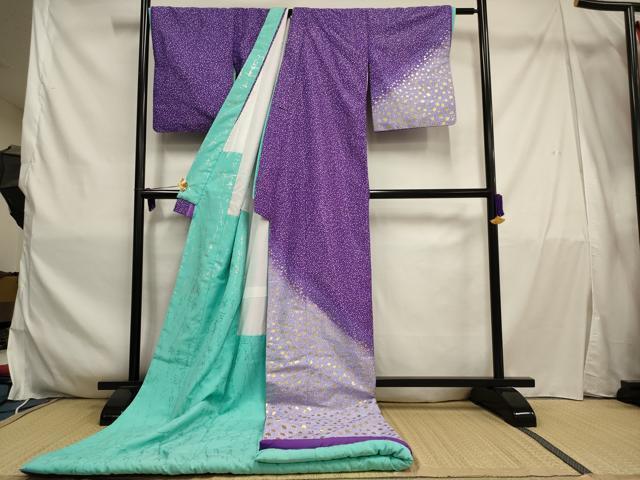 | 身丈 214cm(肩から) 裄丈 68cm 袖丈 49.5cm 縫込み 2.5cm 袖幅 32.5cm 前幅 24.5cm 後幅 30cm 着物縫いこみ 内揚げ 0cm 裄お袖側 約2.5cm 身頃側 約2cm 《 サイズについてはこちら 》 |