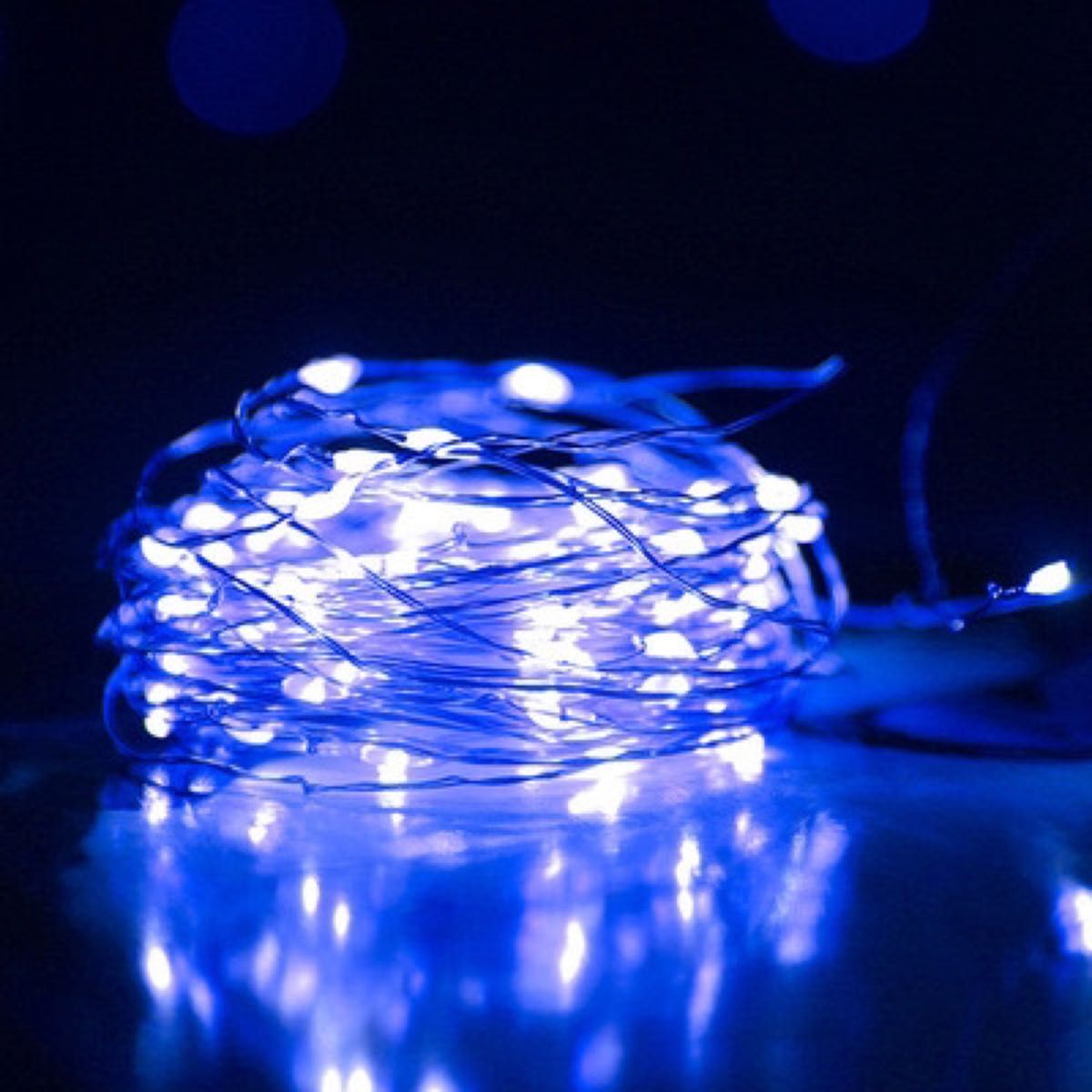 100灯のLEDが12mのワイヤーに配置され、青色の光が空間をクールで幻想的に照らします。