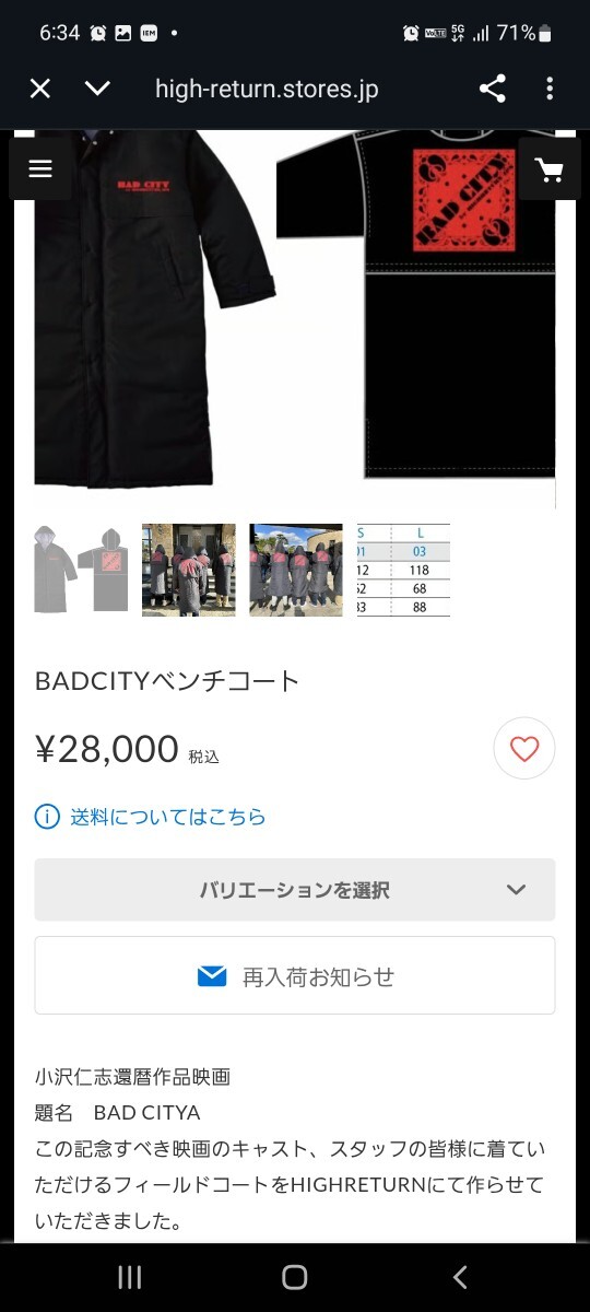 このベンチコート自体、映画製作陣によって特別受注された希少な品で、税込28000円で少数ながら一般販売もされています。(写真10枚目の通り)