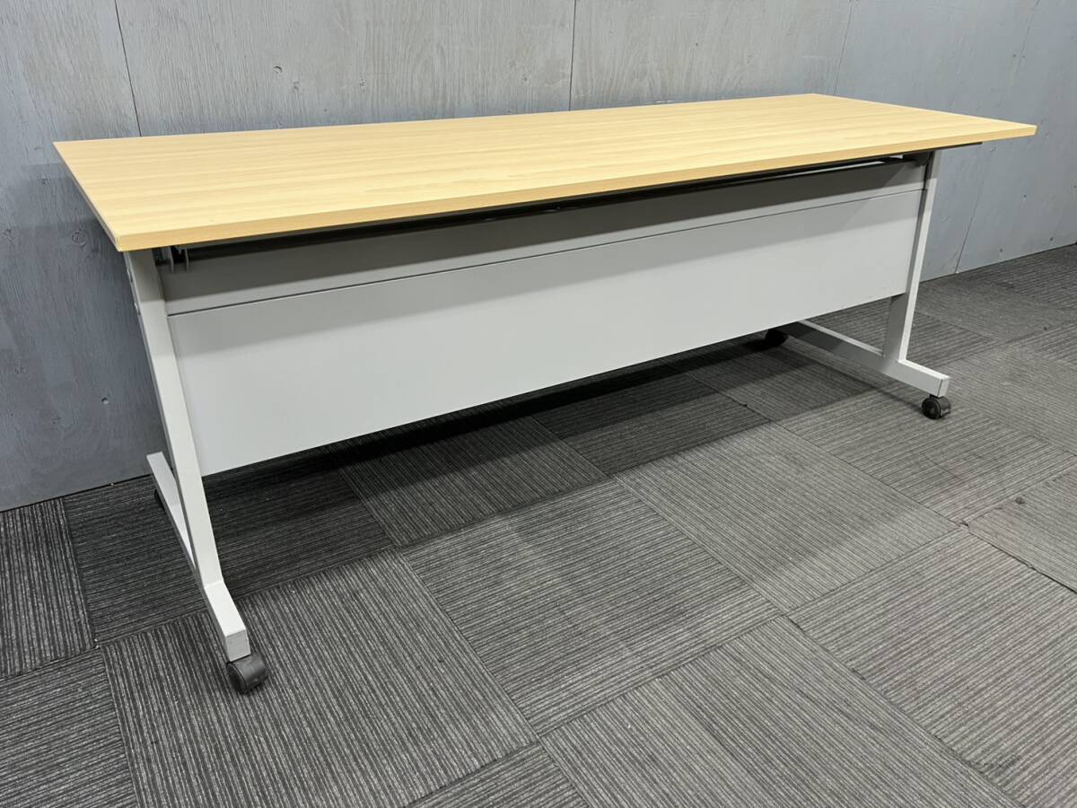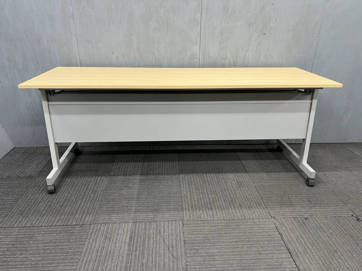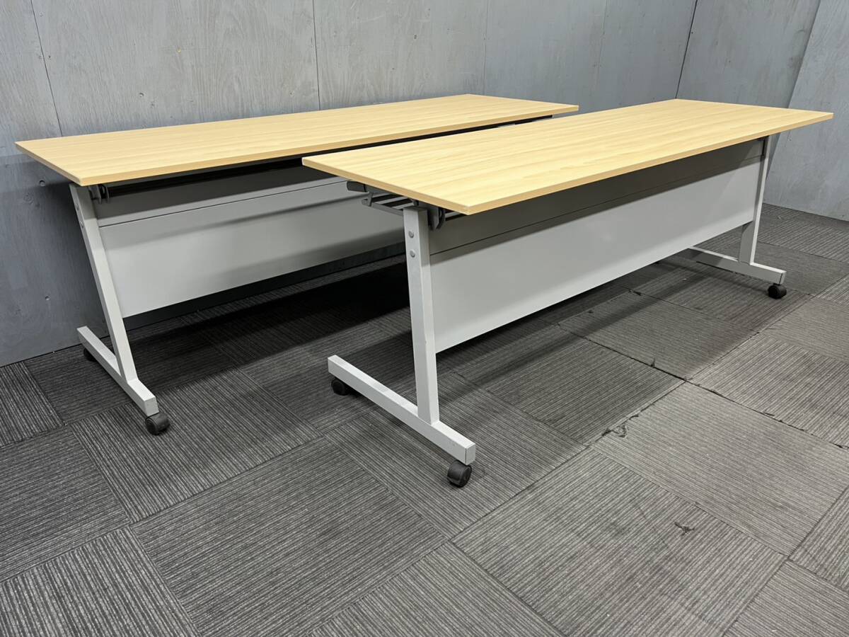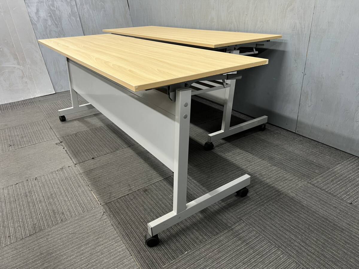 ◆管907◆自社便対応地域あり◆アスクル◆幕板付き会議ミーティングスタック折畳テーブル◆2台セット◆幅1800mm◆天板 メープル系