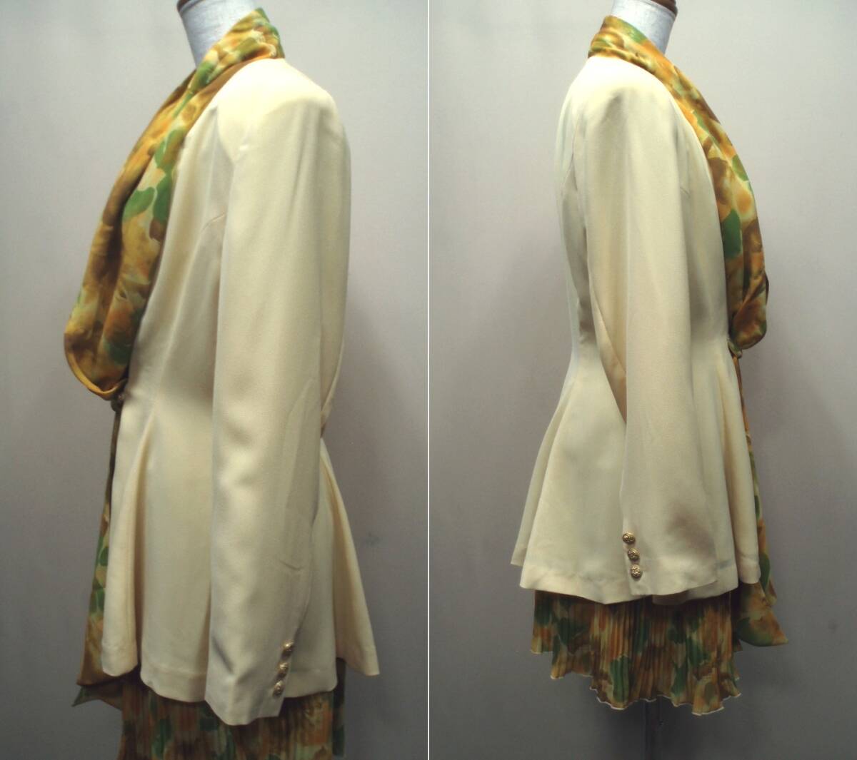 " 表記サイズ ⇒ 9号 実寸サイズ⇒ 着丈 約70cm、 身幅 約45cm、 肩幅 約44cm、 袖丈 約57cm、 ウエスト 約66cm、 総丈 約46cm、" 表記サイズをご理解できない場合は、実寸サイズをご参考ください。 ただし、若干の寸法の誤差が出る場合もございますが、 ご了承ください。ご理解の上、ご入札ください。 |