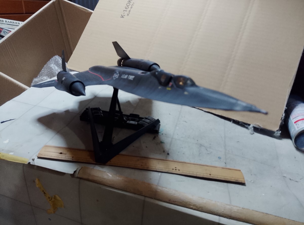 置き場所がないので、出品します。1/72 メーカー不明 SR71完成品です。素組、エアブラシ一部筆塗りです。スタンド式です。機首ピトー管は破損を避けるため別途送らせていただきます。素人の作品なので、ノークレームノーリターンでお願いします。送付はクロネコ着払のみ、送金はかんたん決済とさせていただきます。また、いたずらが多いので、新規の方や評価が悪い方は落札しても除外させていただきます。クロネコヤマト着払ですので、商品配達の際配員に送料を支払う必要がありますので、よろしくお願いします。元払いだと実際の配達料と違ってくる場合がありトラブルの元になるため、着払いにしているので、ご理解をお願いします。