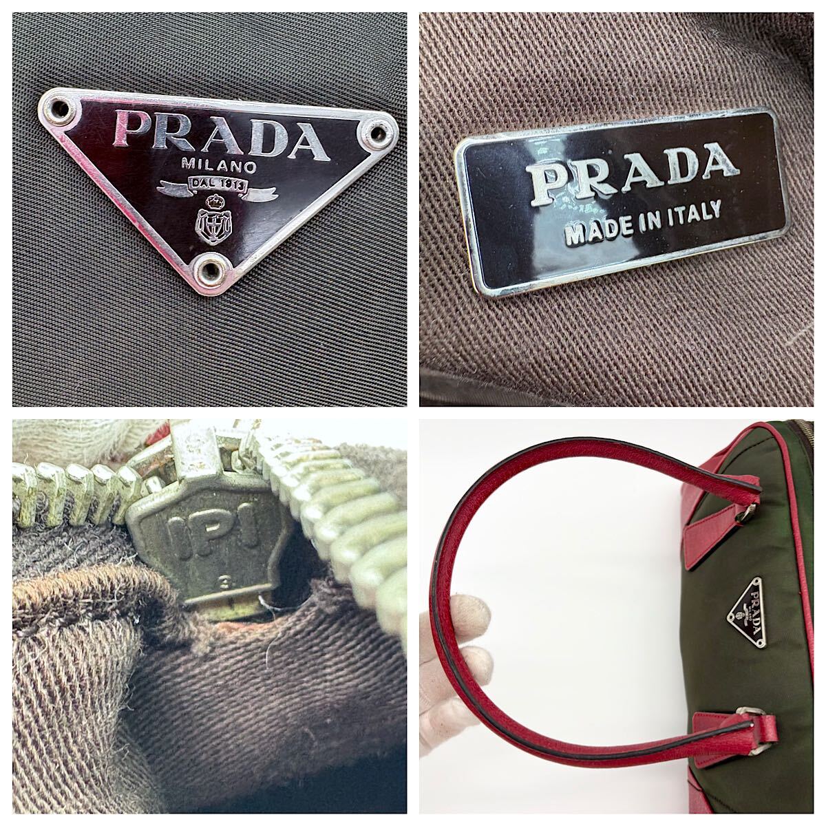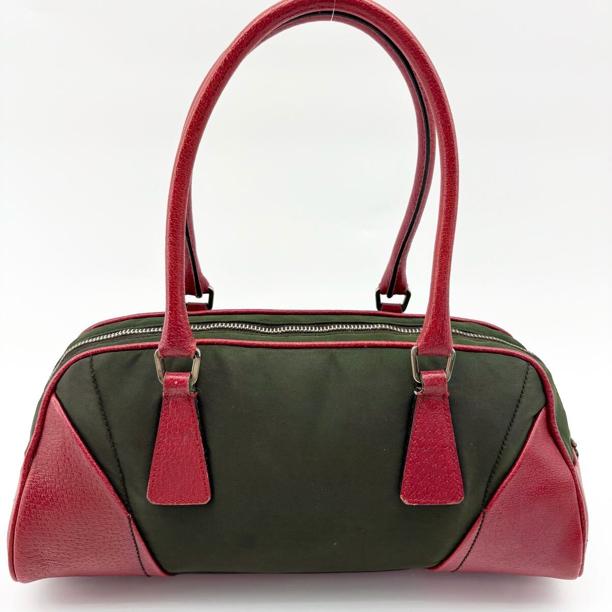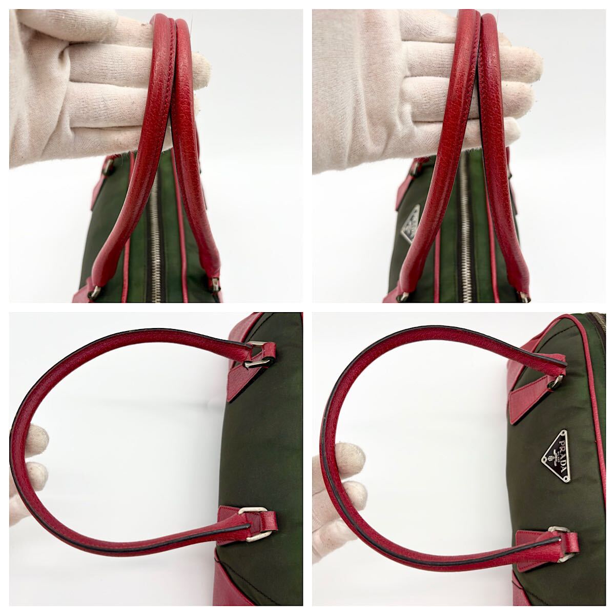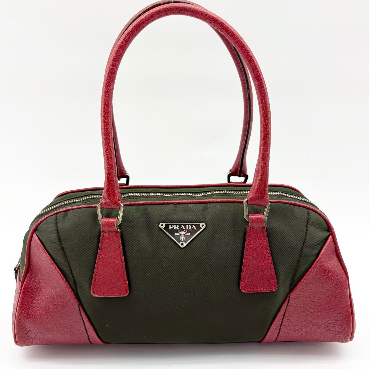 プラダ PRADA 赤 レッド オリーブ カーキ 三角ロゴプレート トライアングルロゴ ミニボストンバック トートバック ハンドバック 肩掛け 肩がけ レザー