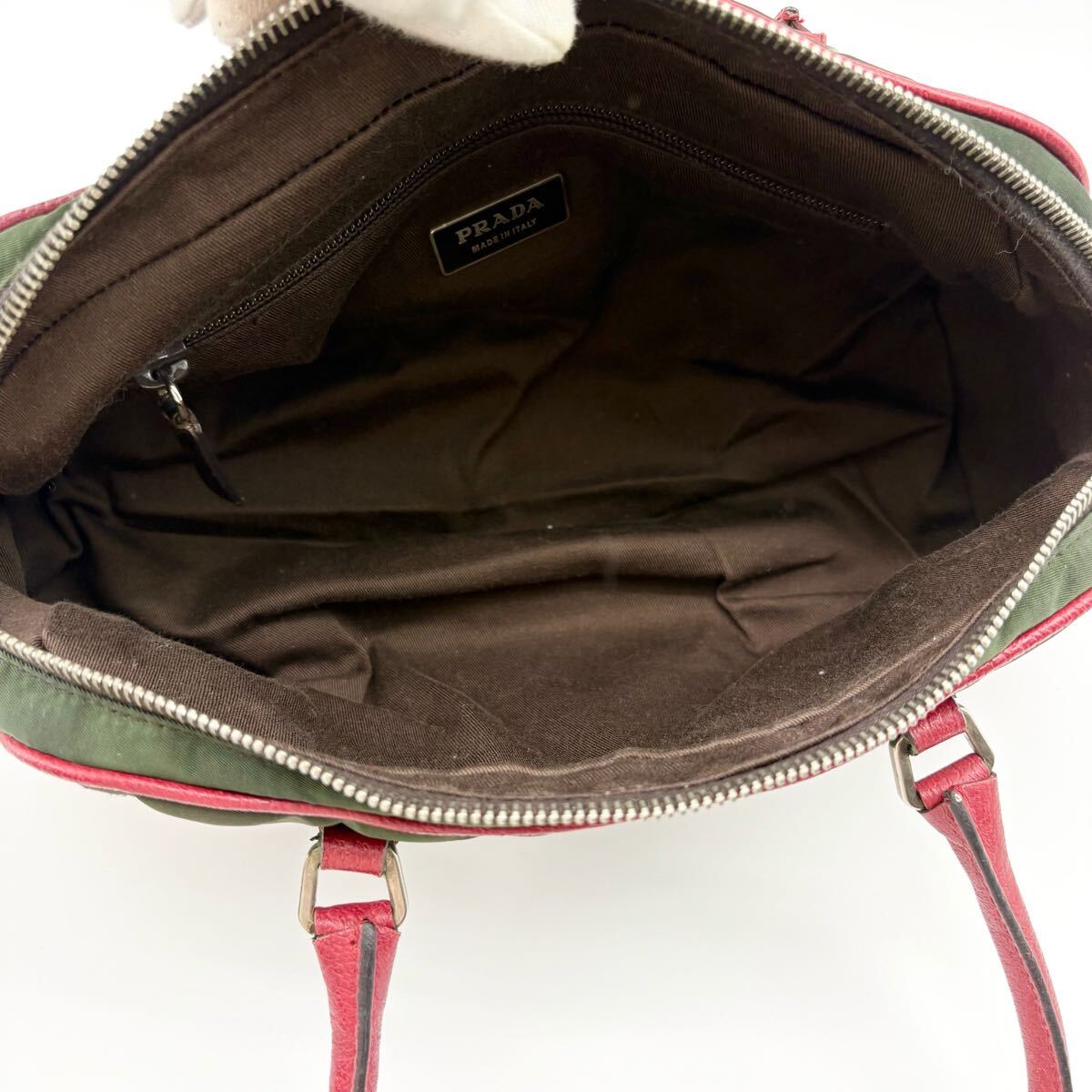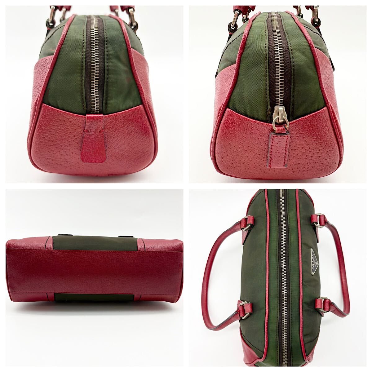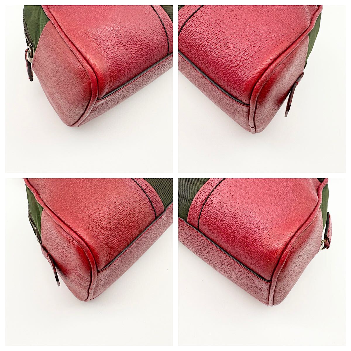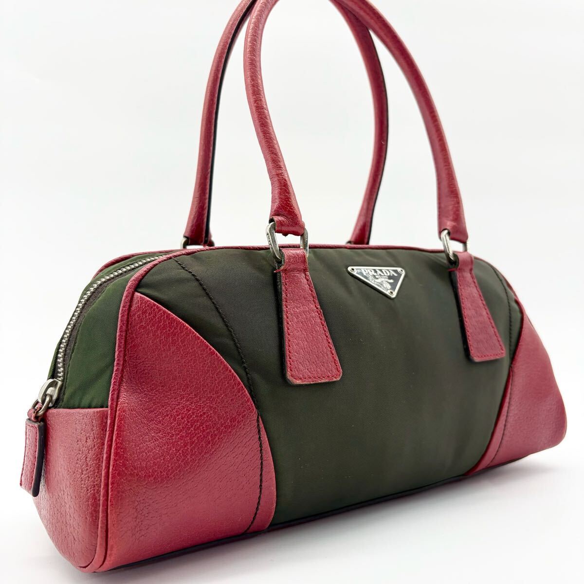 プラダ PRADA 赤 レッド オリーブ カーキ 三角ロゴプレート トライアングルロゴ ミニボストンバック トートバック ハンドバック 肩掛け 肩がけ レザー