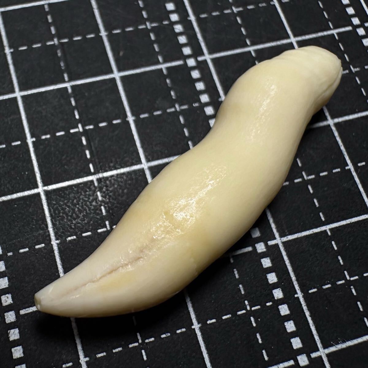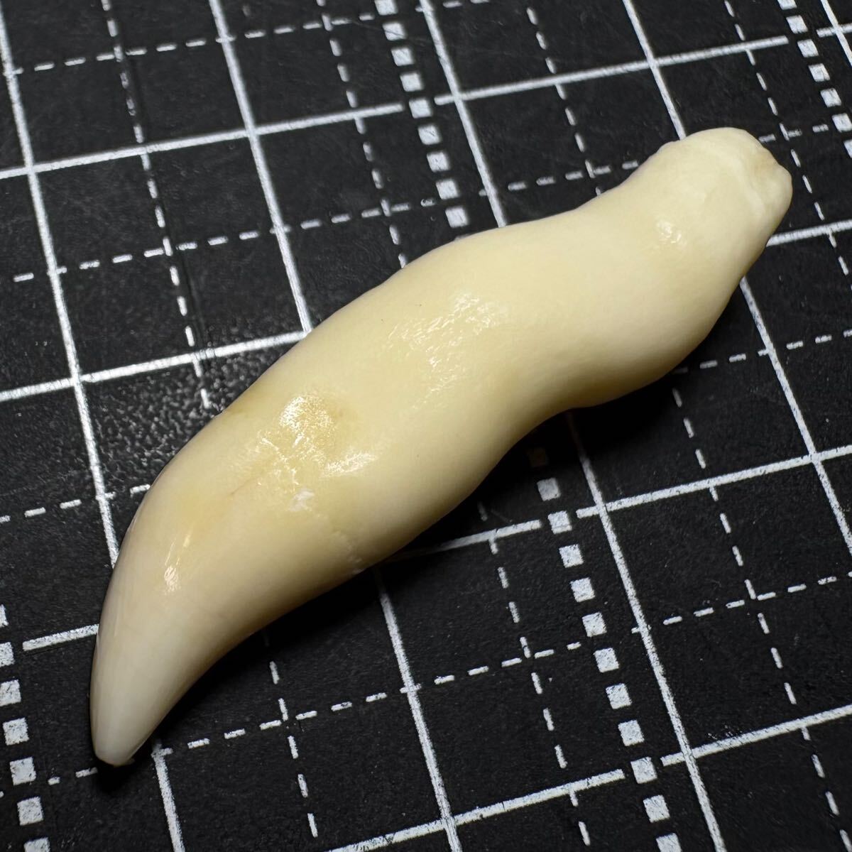 鯨類の歯です。種類は分かりませんがゴンドウ鯨の仲間ではないかと思います。こちらは大型のイルカかもしれません。マッコウクジラではないと思います。