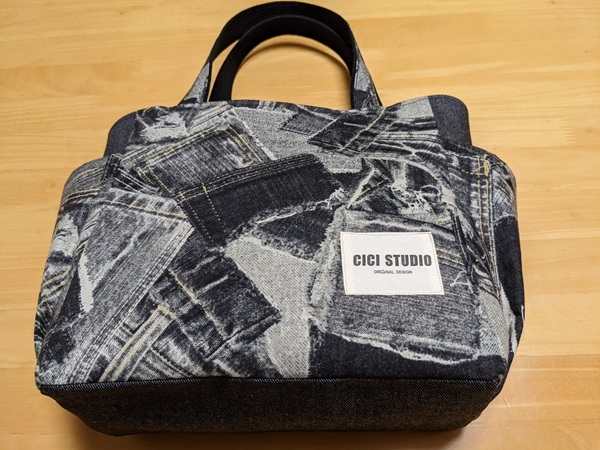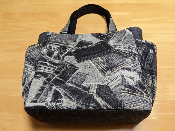 黒のヴィンテージデニムパッチ柄のバッグです。