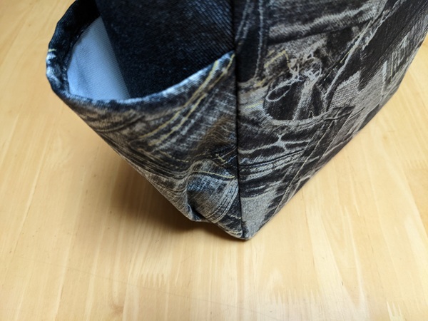 表地には厚手の接着芯を貼り、内布は生成の綿生地を使用しているのでしっかりとして丈夫です。