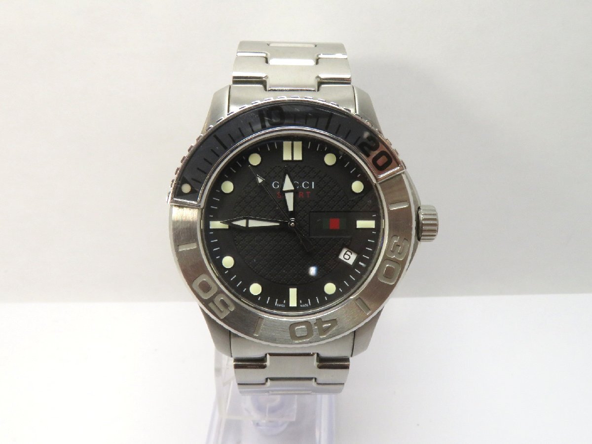 1円開始◆稼働◆ グッチ 126.2/YA126251 Gタイムレス ブラック クオーツ メンズ 腕時計 AC888