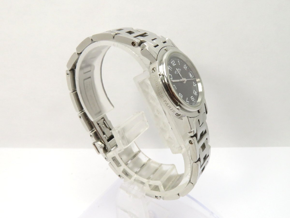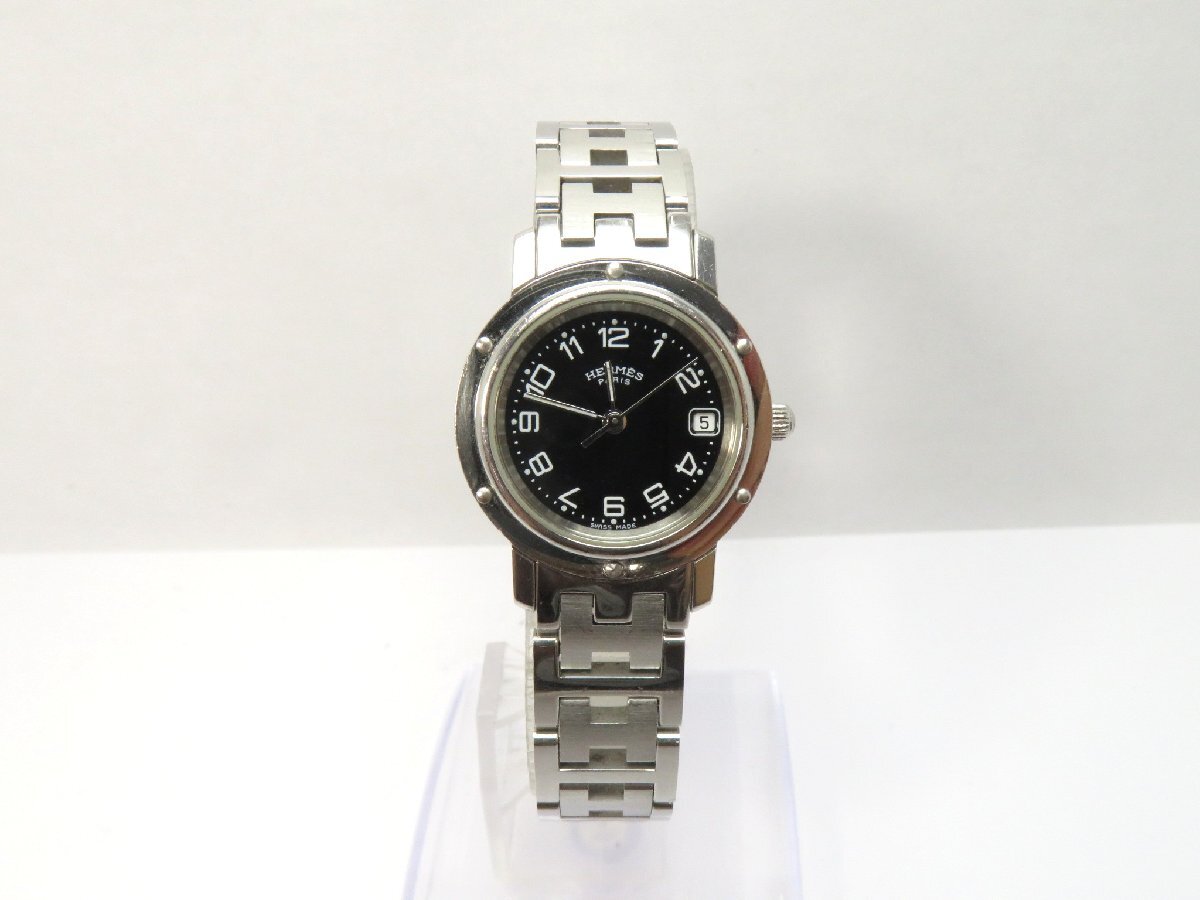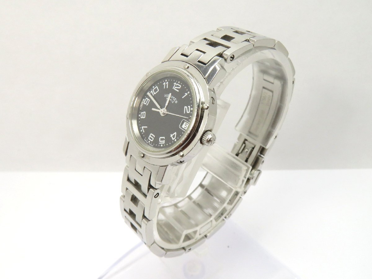 1円開始◆稼働◆ エルメス CL4.210 クリッパー ブラック クオーツ レディース 腕時計 AC890