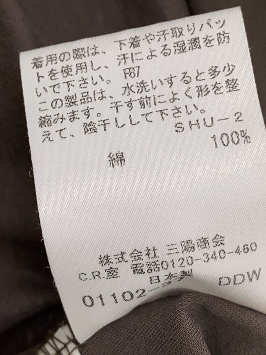 | (1)シミあり ボタン下付近に汚れがございます。 |