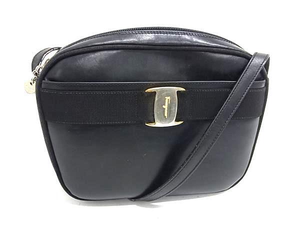 1円 Salvatore Ferragamo フェラガモ ヴァラ レザー クロスボディ ミニ ショルダーバッグ 斜め掛け レディース ブラック系 FP9247