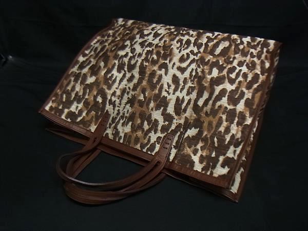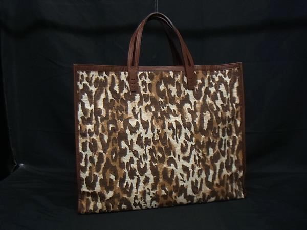 1円 ■美品■ A VACATION アヴァケーション キャンバス×レザー×スエード レオパード柄 トートバッグ ハンドバッグ ブラウン系 FU6457