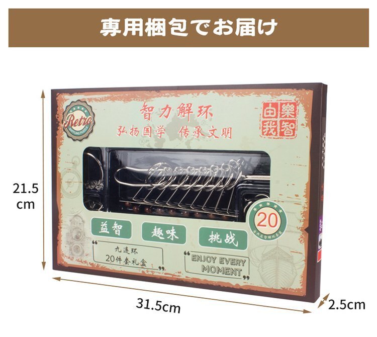 ◆知恵の輪 パズル 20点セット 脳トレ チャイニーズリング 九連環 暇つぶし ボケ防止に