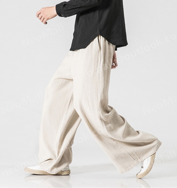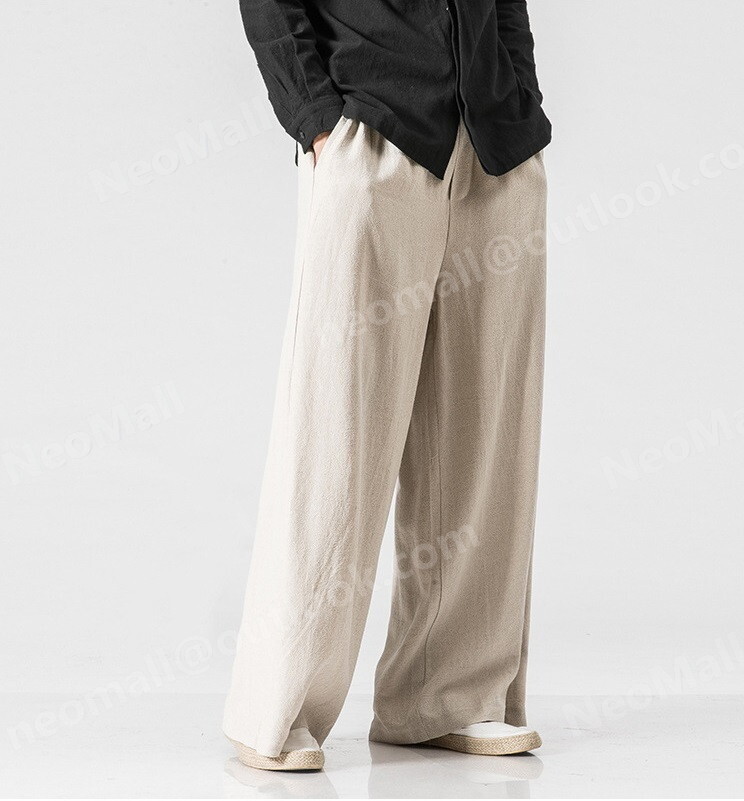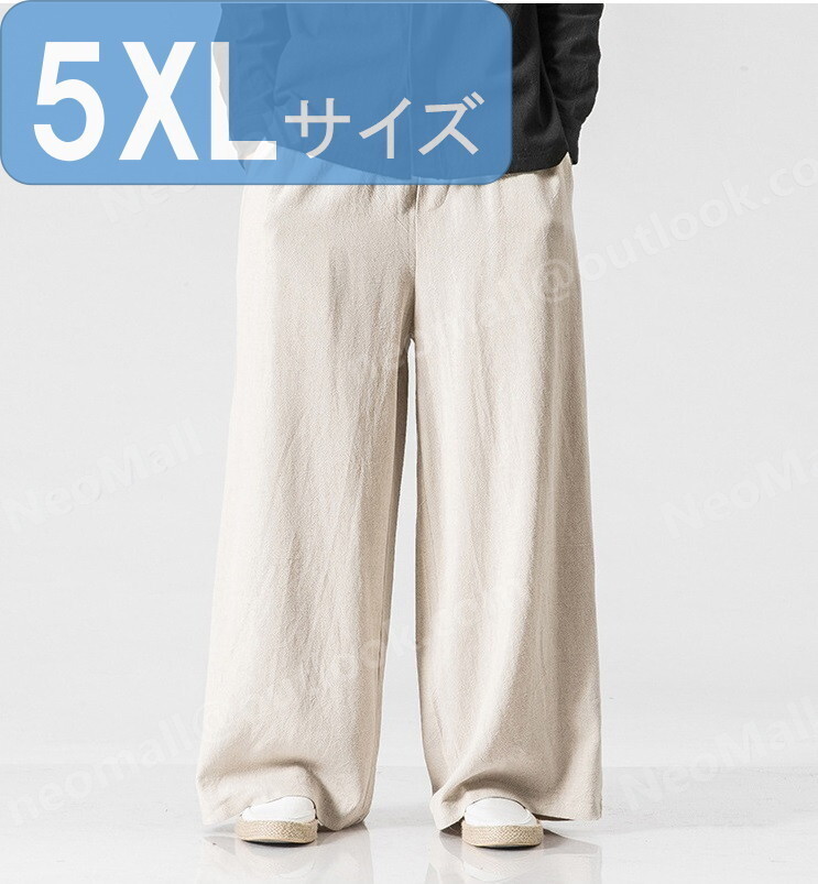 お買い得☆メンズ ワイドパンツ ベージュ 5XL カジュアル ロングパンツ スウェット 無地 ポケット付 オールシーズン【064】