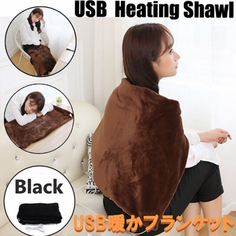 USB発熱膝掛け ブラック 肩掛け 膝掛け 電気毛布 暖かブランケット ホットブランケット