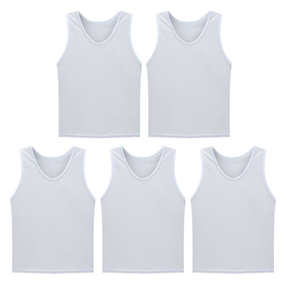 ◆ゼッケンベスト 5枚セット ビブス メッシュ 無地 サッカー バスケ フットサル 運動会 リレー スポーツ イベント ボランティア チーム分け 色分け 子ども用 大人用【キッズ用ホワイト】BIBVS05S