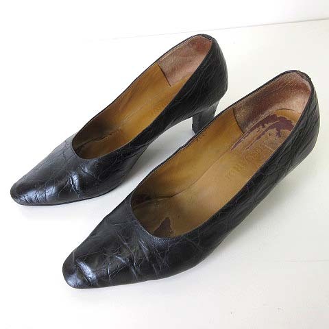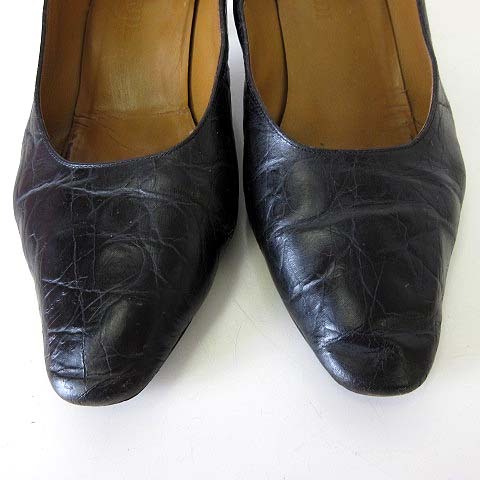トラサルディ TRUSSARDI パンプス クロコ型押し 本革レザー 24.0cm 黒 ブラック くつ 靴 シューズ レディース