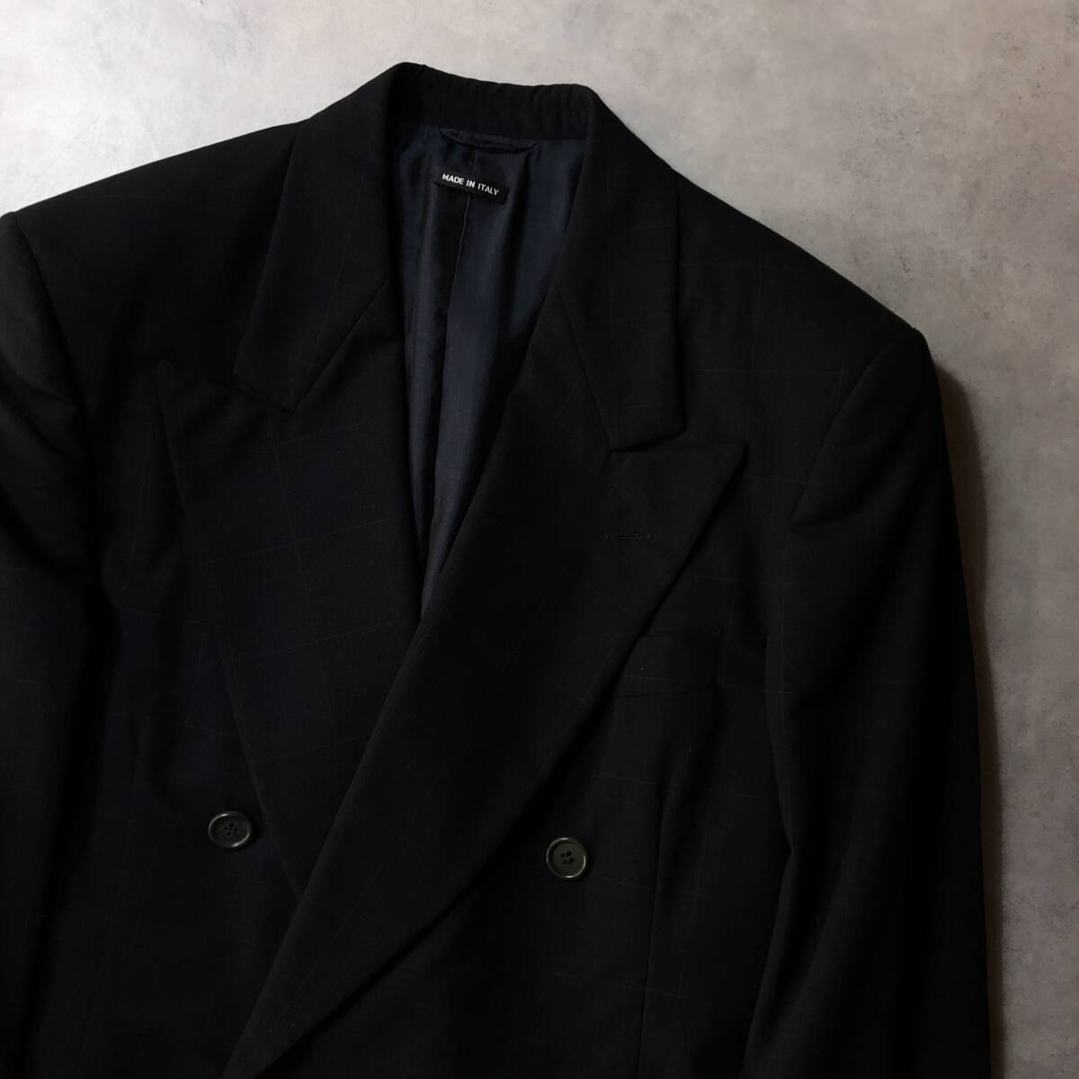GQ4101◇GIORGIO ARMANI : 90's archive ダブルテーラードジャケット◇44◇黒に近い 総裏地 ジョルジオアルマーニ オールド アーカイブ