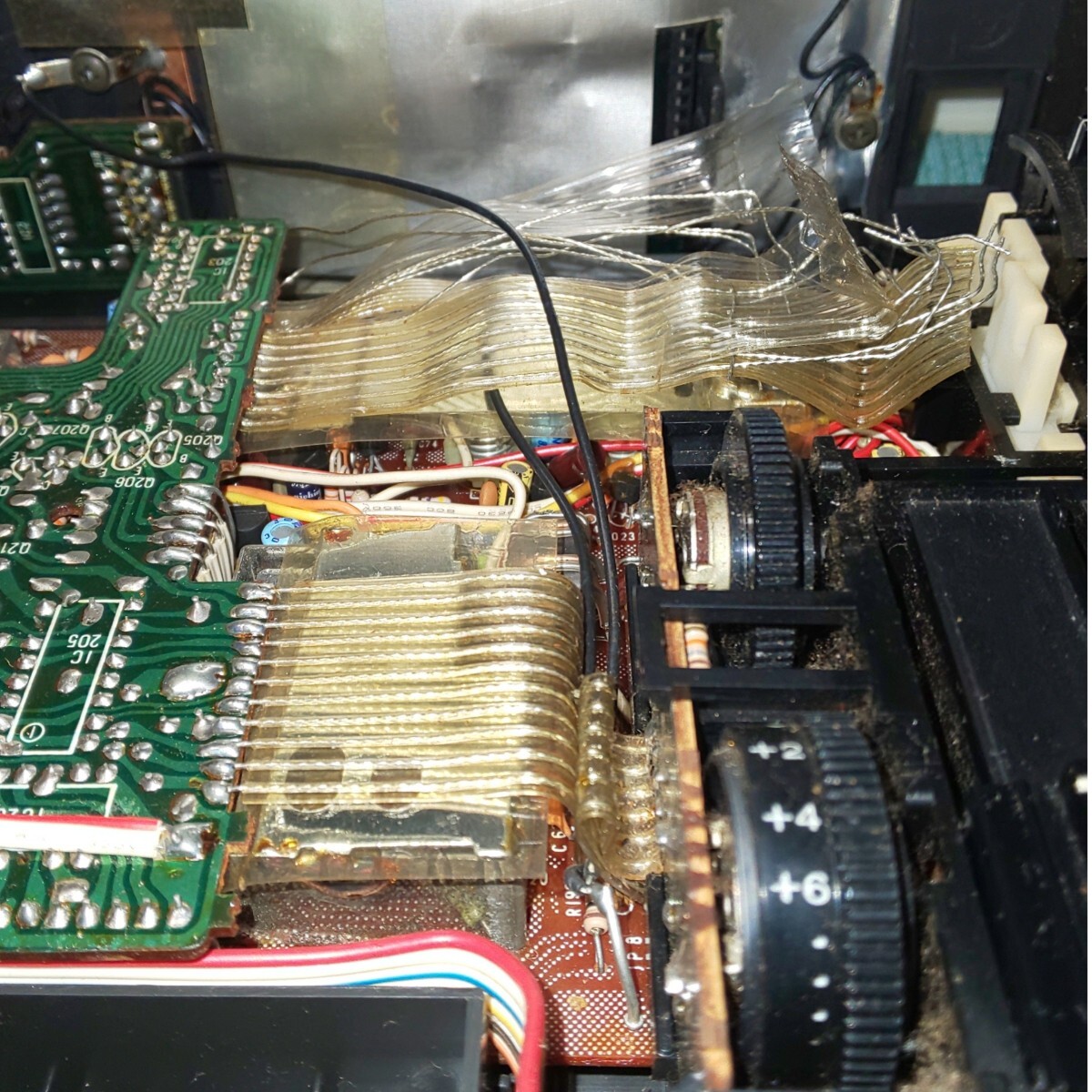 配線ケーブルが、外れています。固定ビス欠品、右側のスイッチのツマミが欠品しています。本体に擦れキズ、汚れあります。