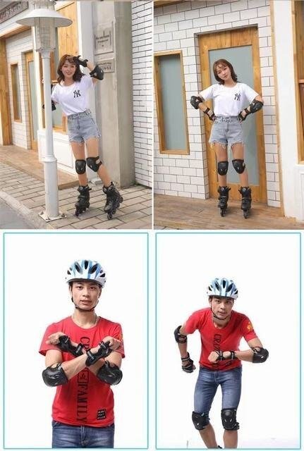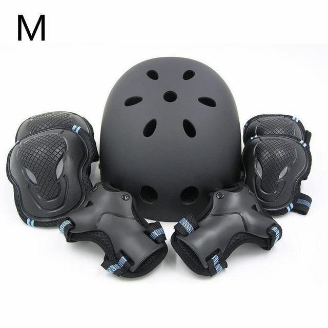 大事な頭?肘?膝?手首を保護する7点セットです。(ヘルメットは黒色になります) プロテクターはマジックテープで固定します。 ゴムで伸縮しますので(肘?膝部)スムーズに動かせます。
