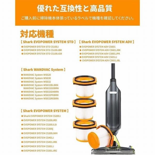 【高品質なHEPAフィルター】高品質なHEPAフィルターを採用しており、0.3ミクロンの微細な粒子を99.99%捕らえられますから、細かい粒子、ほこり、花粉などを効率的に阻止します。フィルターは洗えるコンパウンド素材でできており、耐久性があり、再利用可能で経済的です。吸引力を保つために、フィルターは定期に洗浄する必要があります。常に1週間ごとに1回洗浄することをお勧めです。洗浄後、風通しがよい場所で十分に乾燥させてください。 【吸引力と清浄力を回復】シャーク 掃除機用フィルターは表面積を拡大したことにより、排気性能を大幅に向上し、吸引力を高めることができ、本来の吸引・清浄性能を発揮することができます。純正フィルターと同じ性能でご利用できます。正しいタイミングで早めにフィルターを交換することで、目詰まりを減らし、掃除機をかけている時に匂いもすっかりなくなりました。 【交換の目安】掃除機の性能を維持できるために、定期的にフィルターを交換してください。使用状況に応じて3?6か月ごとにフィルターを交換することをお勧めします。特にペットを飼っている家庭では、交換時間を短縮