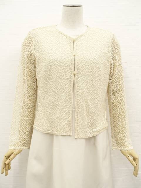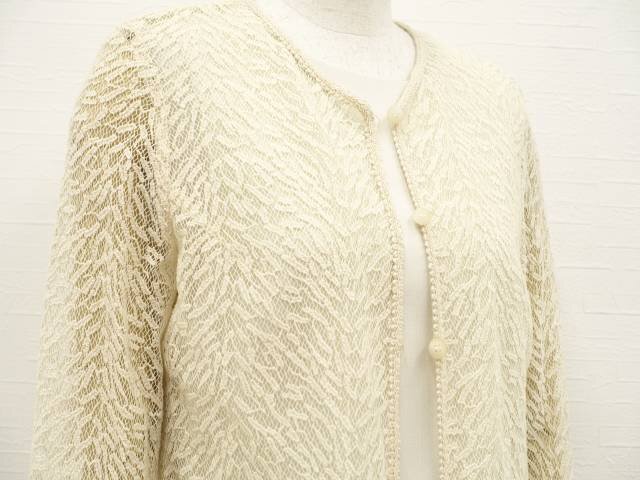 長袖 レースカーディガン 40 ベージュ 総柄 【メール便可】