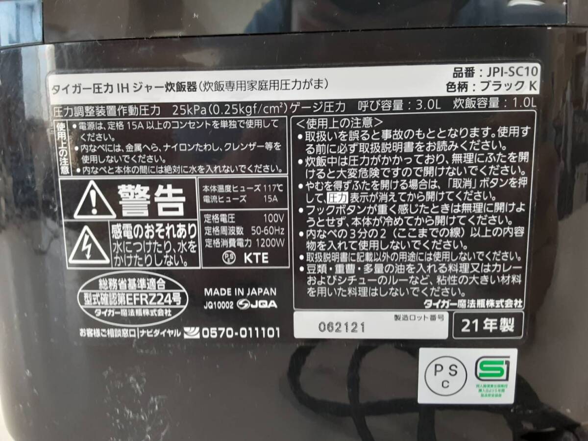 横漏れがいたします。 コードが最後まで収納できません。 JPI-SC10は蒸気口の留め具が破損しております。