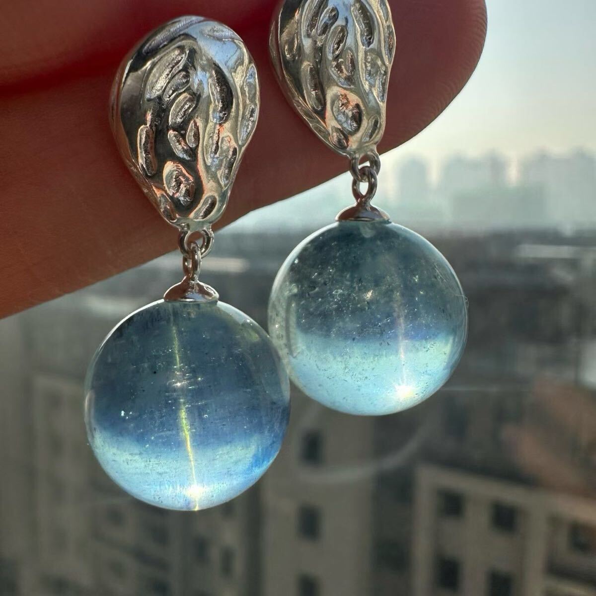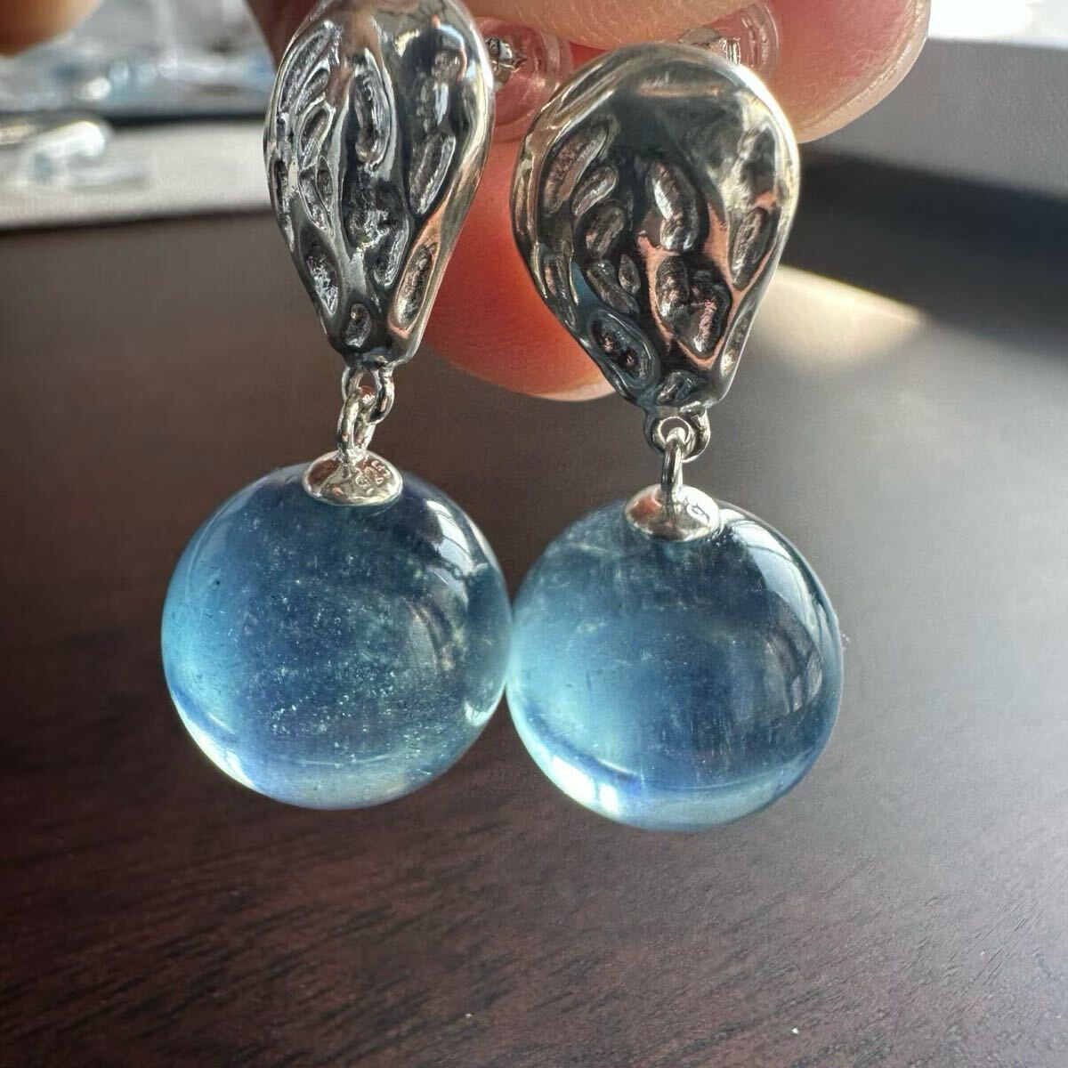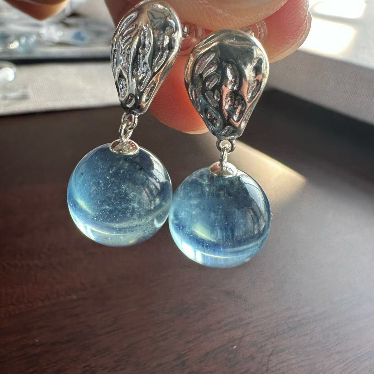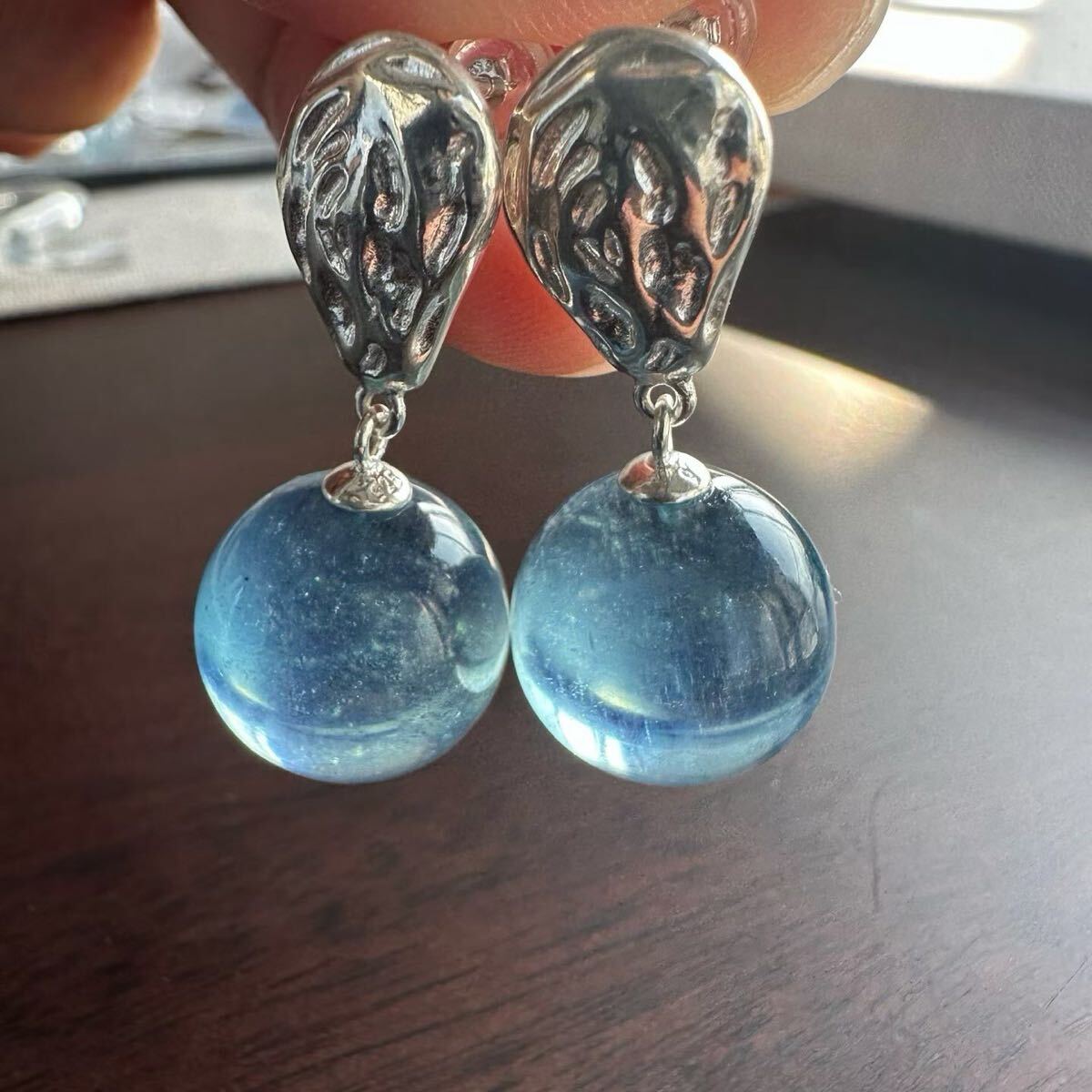 天然アクアマリンのピアスです。