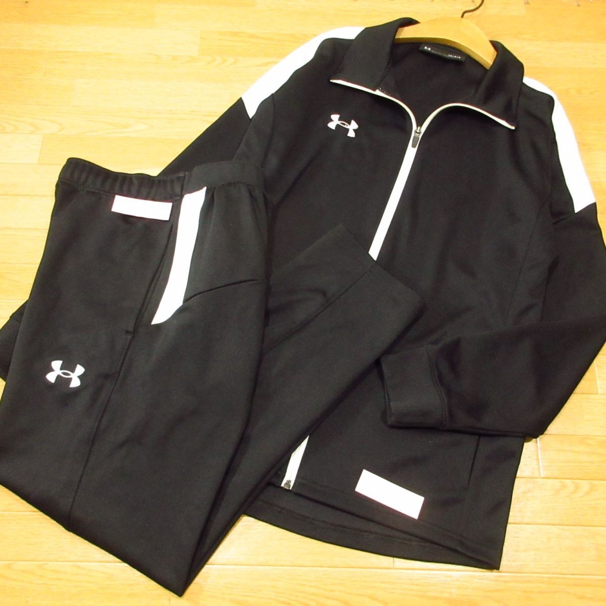 ◎使用少なめ!UNDER ARMOUR アンダーアーマー L 上下セットセットアップ ジャージ ジャケット ジョガーパンツ メンズ 黒◆BA3957