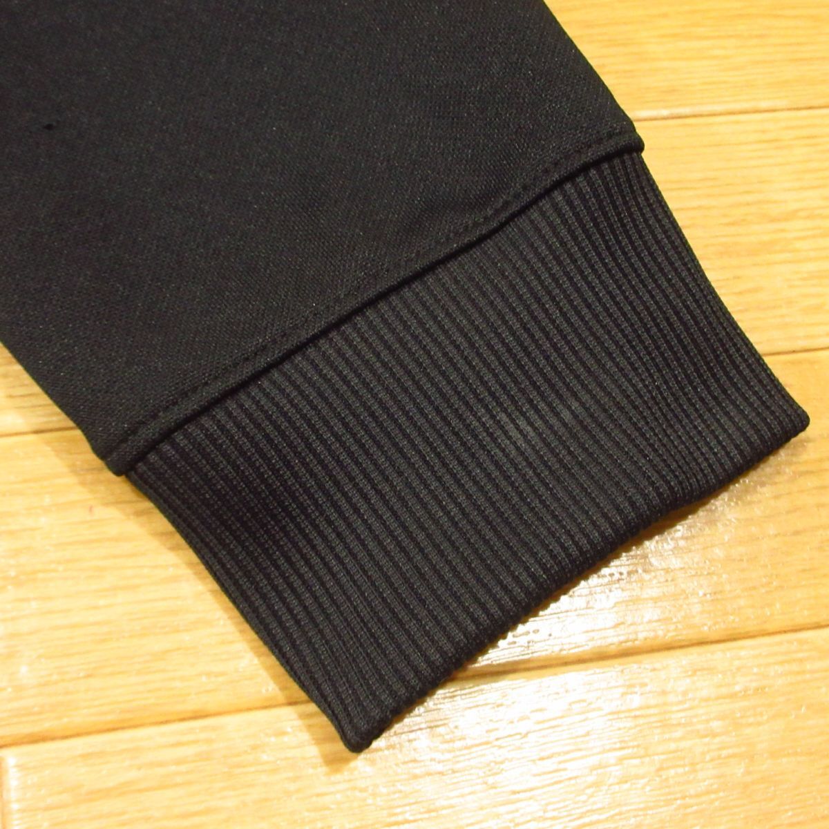 ●上:ジャージ素材・英記名刺繍あり(テープ部)。