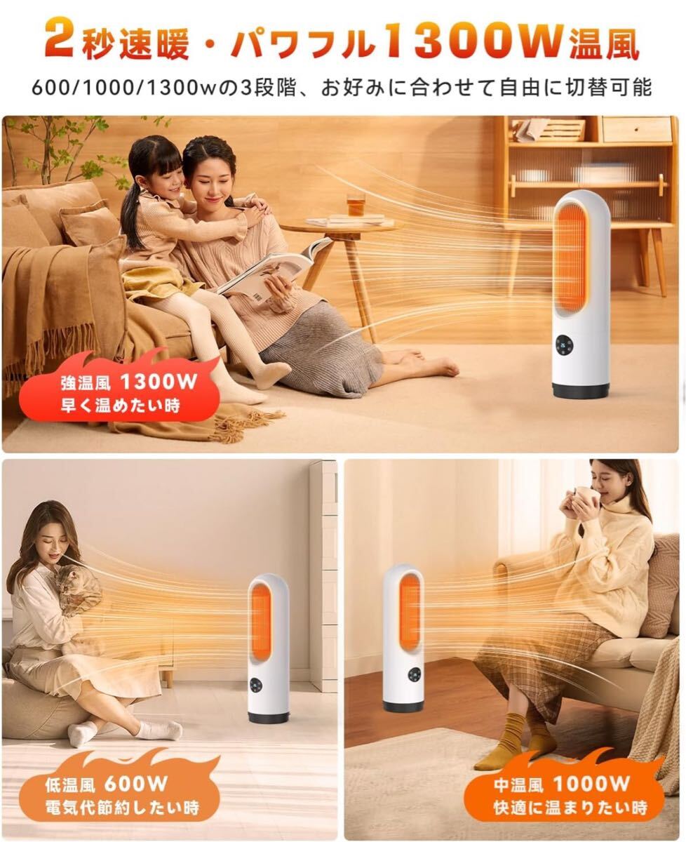 サイズ:奥行14.5×幅14.5×高さ52cm/重量:約1.9kg/消費電力:600W・1000W・1300W/電圧:100〜110V。寝室、リビング、オフィス、トイレ、脱衣所など様々な場所で大活躍!