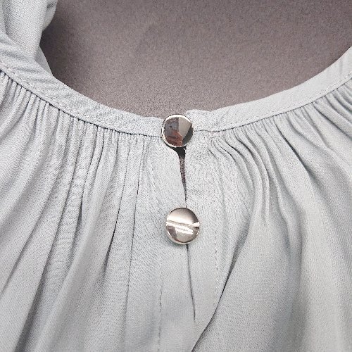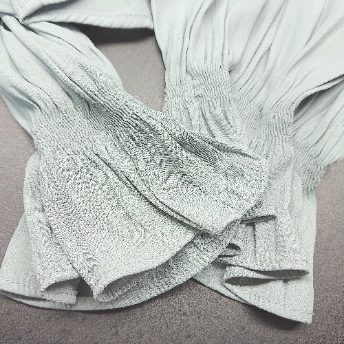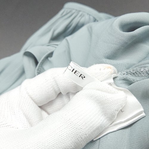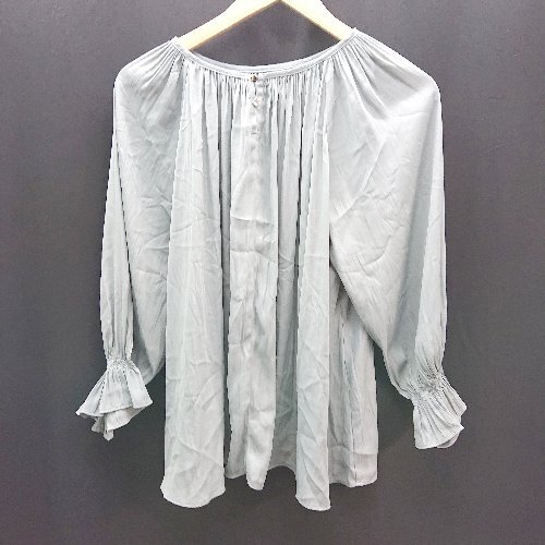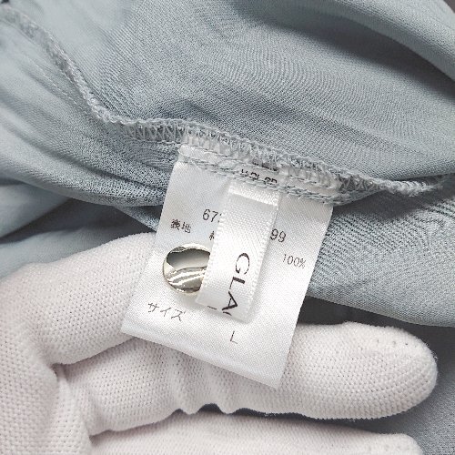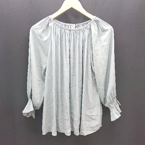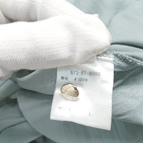 ◇ ◎ GLACIER バックボタン Uネック オフィスカジュアル 長袖 ブラウス カットソー サイズL グリーン レディース E