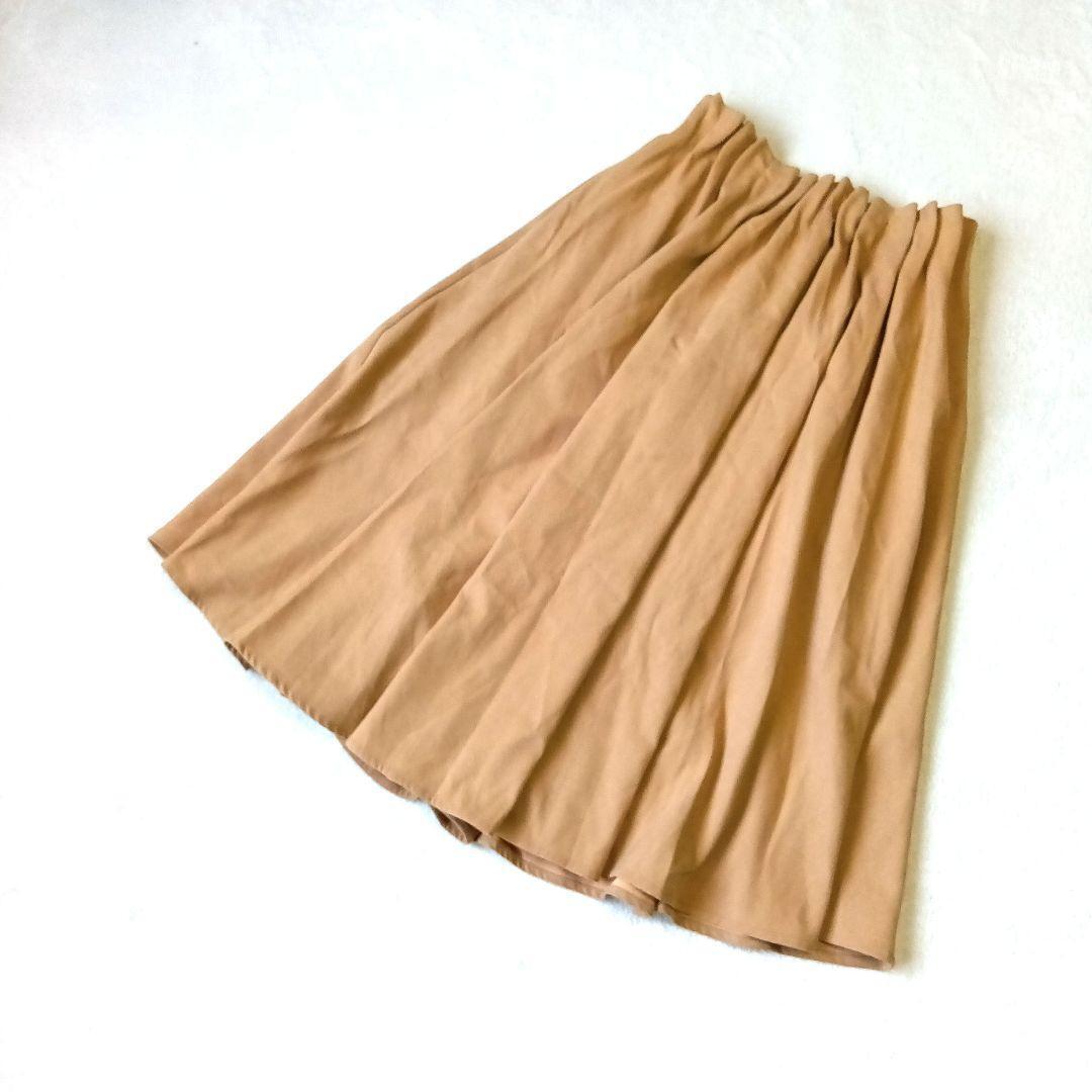 レイカズン レディーススウェードスカートFREEサイズ ウエストゴム 茶系 E30924
