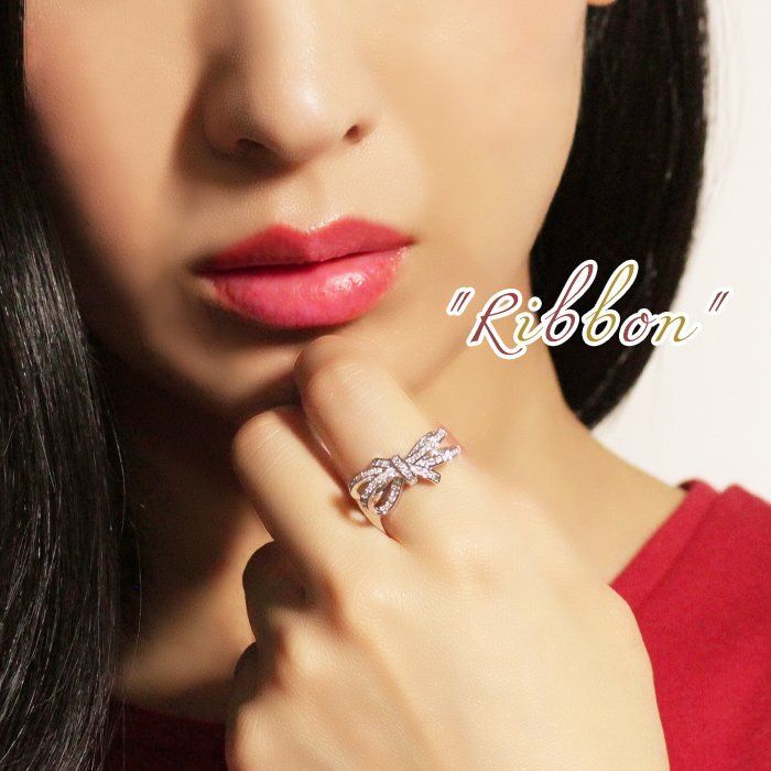 18号 / 新品 指輪 K18GP リボン りぼん リング レディース シルバー 18金 ホワイトゴールド ダイヤ CZ 豪華 上品 おしゃれ プレゼント 女性