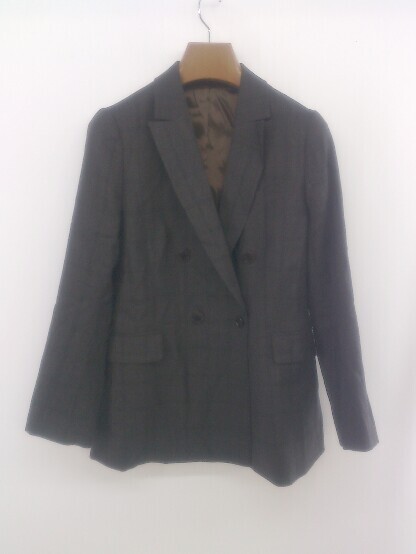 ◇ LES MUES レミュー 4B シャドーチェック 長袖 ジャケット サイズ5 ダークベージュ レディース P