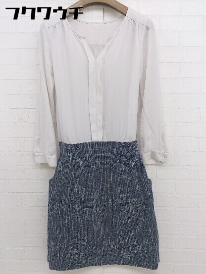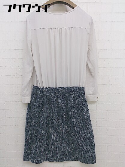 ◇ fredy emue フレディ エミュ 切替 長袖 膝丈 ワンピース サイズ36 ネイビー グレー レディース