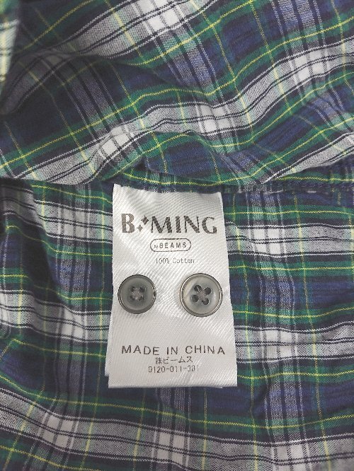 ◇ Θ B:MING by BEAMS チェック柄 長袖 シャツ グリーン ホワイト ネイビー系 レディース メンズ E