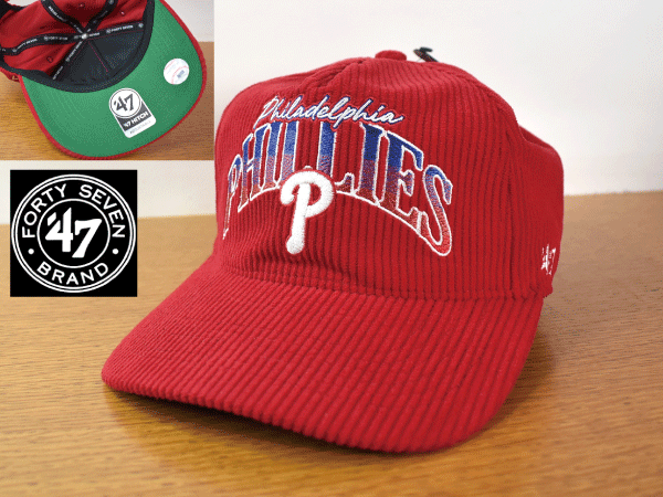 A52《未使用品》47 BRAND 47ブランド【フリーサイズ】MLB PHILADELPHIA PHILLIES フィリーズ コーデュロイ生地 帽子 キャップ USモデル