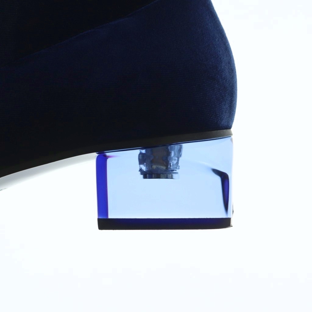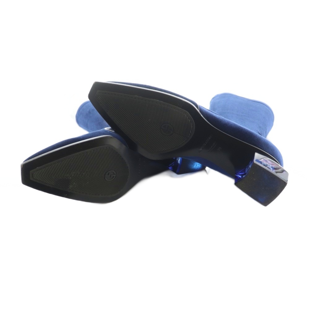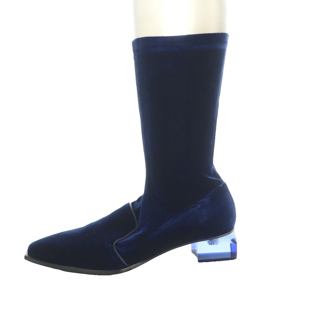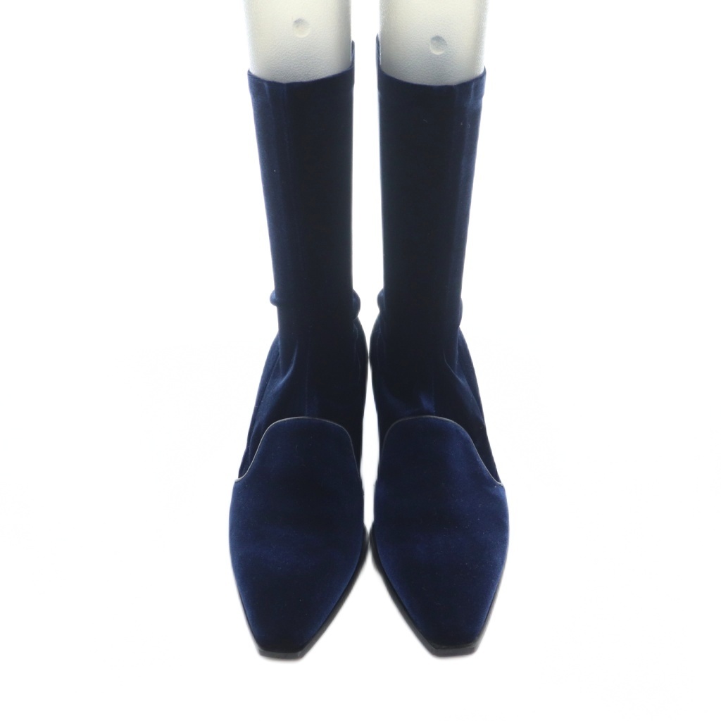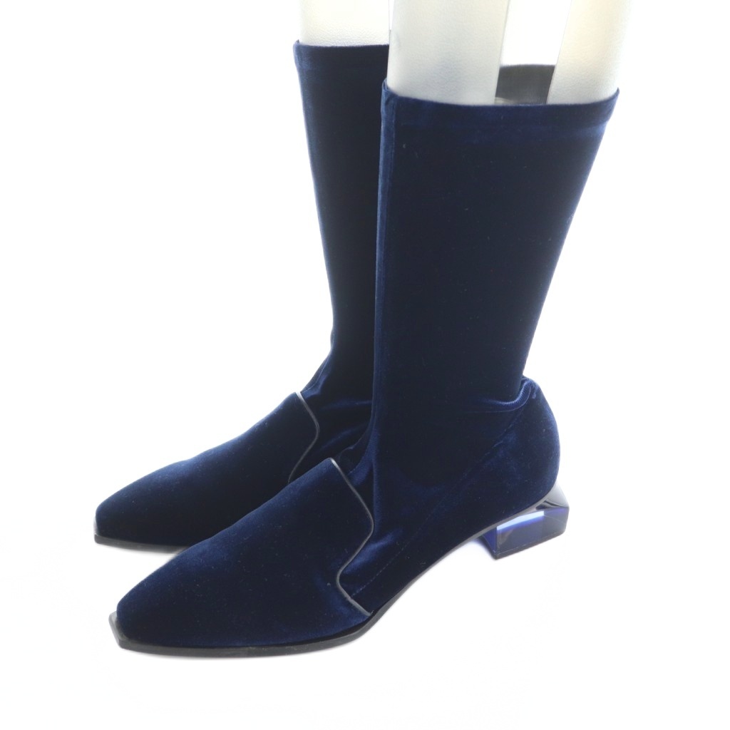 ジョルジオアルマーニ ショートブーツ ミドルブーツ クリアヒール ベルベット 39 24.5-25.0cm 青 ブルー /MI ■OS レディース