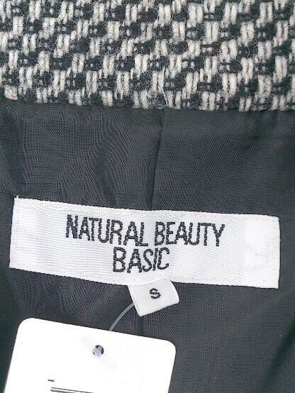 ◇ NATURAL BEAUTY BASIC ウール混 チェック 長袖 コート サイズS ブラック ホワイト レディース