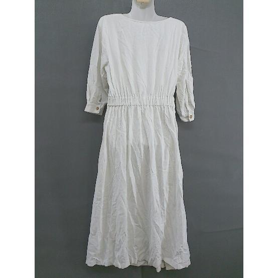 ◇ LOWRYS FARM ローリーズファーム リネン混 七分袖 膝下丈 ワンピース サイズF オフホワイト系 レディース