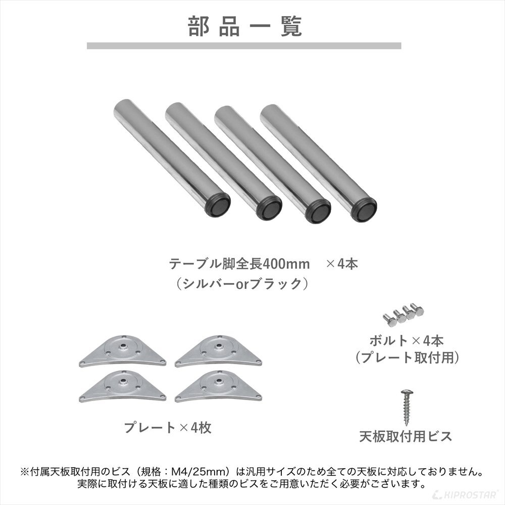 | 備考 | テーブル用天板は付属しません。 天板取付用のビス(規格:M4/25mm)を付属しておりますが、実際に取付ける天板に適した種類のビスをご用意ください。 |