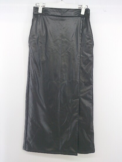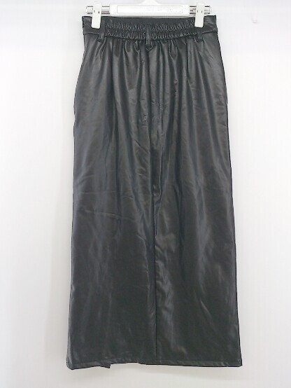 ◇ LOWRYS FARM フェイクレザー フロントスリット ロング タイト スカート サイズM ブラック レディース E