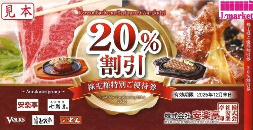 安楽亭 株主優待20%割引券 VOLKS ステーキのどん等 2025/12/31まで
