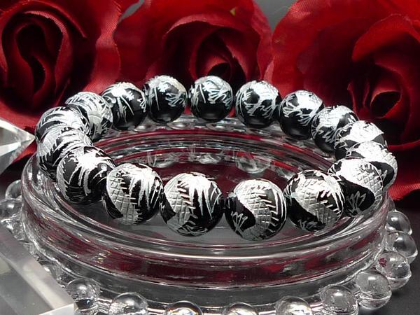 銀龍 オニキス 12mm ブレスレット メンズ パワーストン 天然石(17cm)