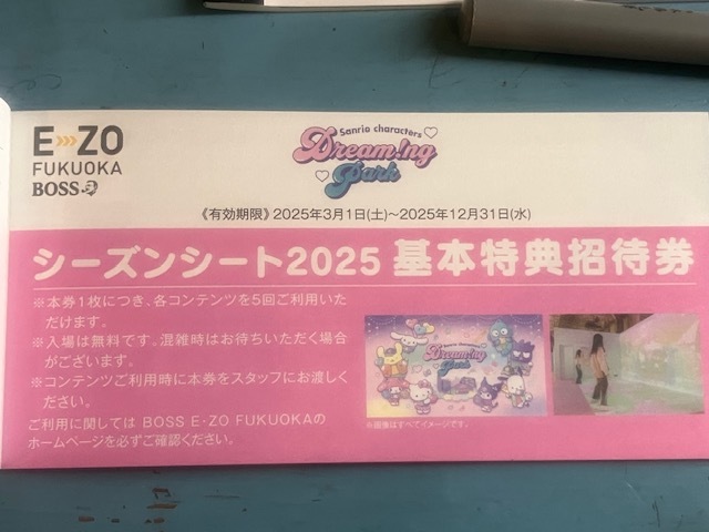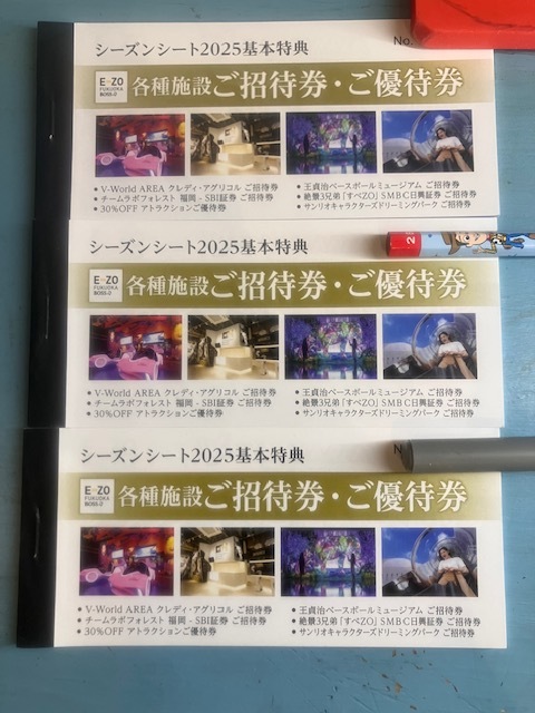 送料込み BOSS E・ZO FUKUOKA ボス イーゾ フクオカ 優待券 3セット チームラボ V-World AREA クレディ・アグリコル すべりZO 送料無料