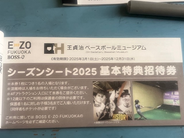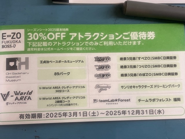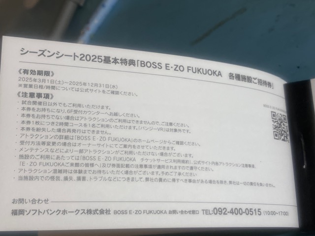 BOSS E・ZO FUKUOKAの優待券3セットです。