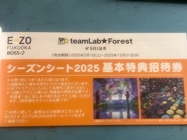 BOSS E・ZO FUKUOKA ボス イーゾ フクオカ 優待券 3セット チームラボ V-World AREA クレディ・アグリコル すべりZO